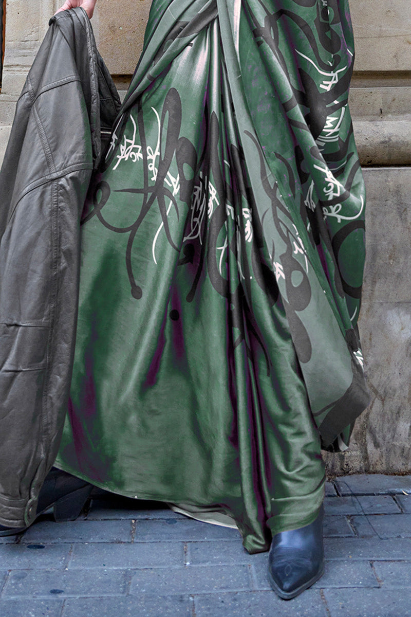 Green Soft Silk with Beautiful Water color type of Digital Print Saree